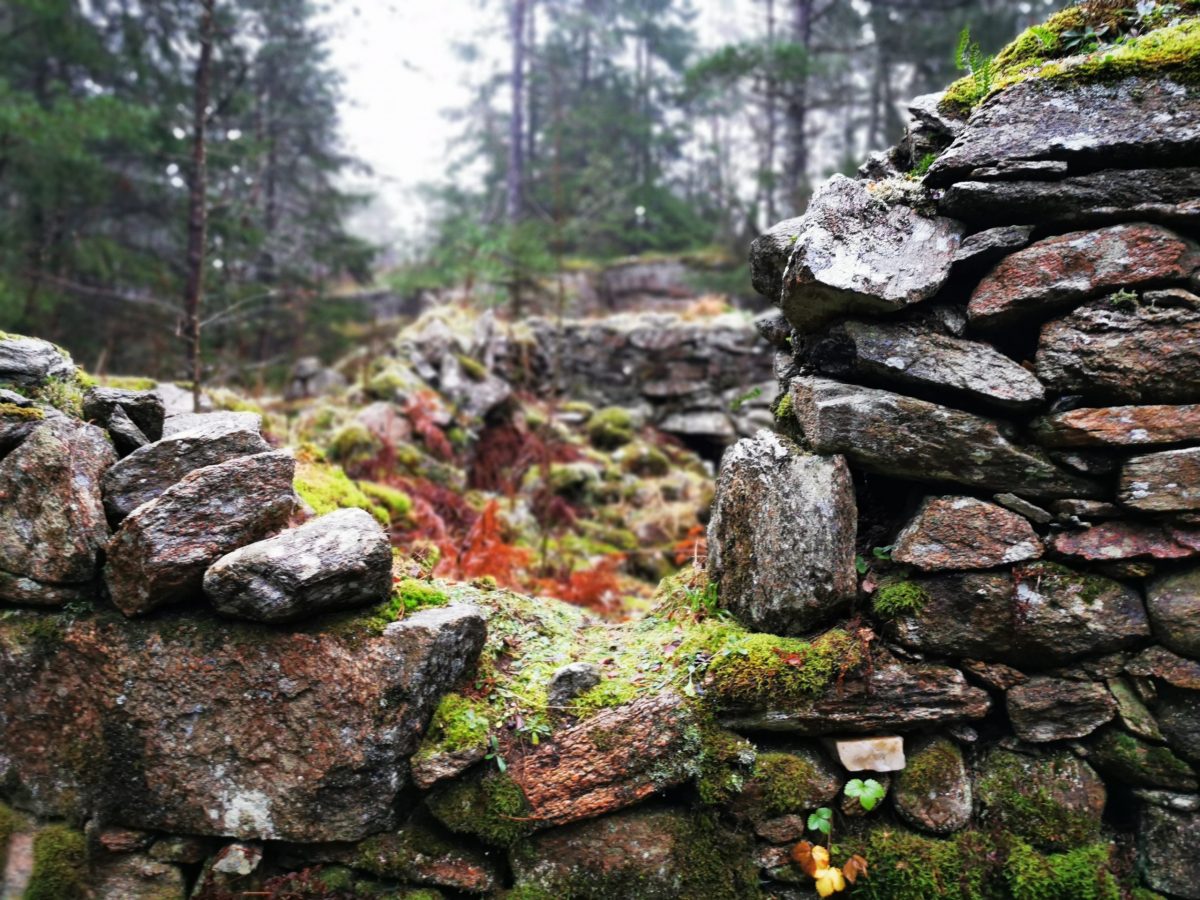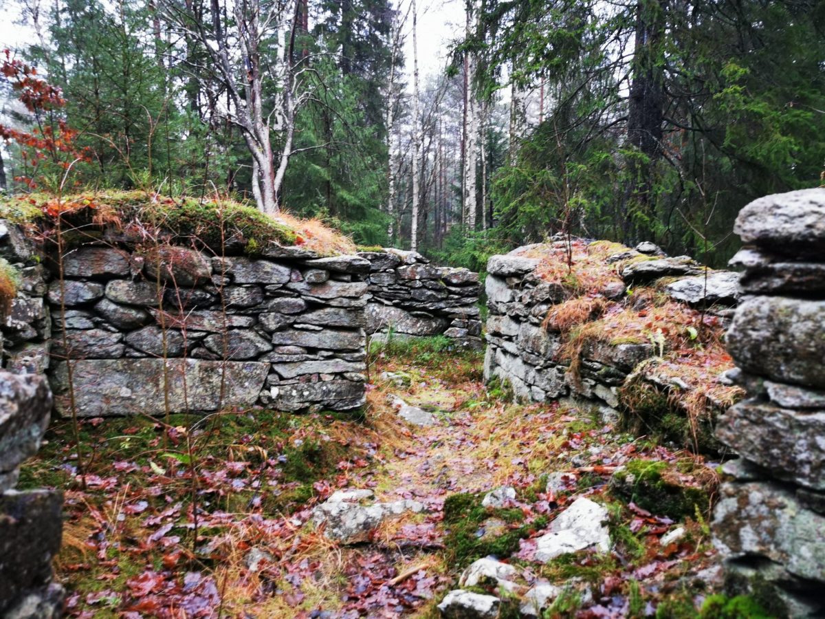 Vi gick iväg längs en bred stig som ledde oss genom landskapets bergiga kullar och passerar en mängd övergivna torpruiner. Vid varje ruin fanns skyltar som berättade om byggnadens historia, både på svenska och engelska. Dessutom var det på varje skylt tydligt märkt på en karta var längs leden man befann sig.