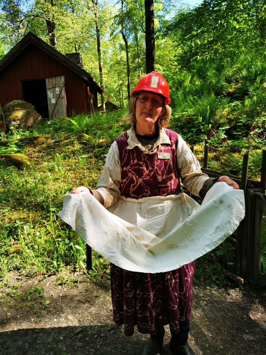 Pia, som även är en av delägarna till STF Lugnåsberget Ekohotell (där vi sov när vi vandrat etapp 7 av Biosfärleden – länk till mitt inlägg), var vår guide under visningen. Och hon var så otroligt engagerad och kunnig att denna guidning blev ett minne för livet. Redan innan vi kom in berättade hon uppbragt att det var kvinnorna och barnen som fick bära ut allt ”skräp” som männen högg bort när de tillverkade kvarnstenarna. I sina förkläden.